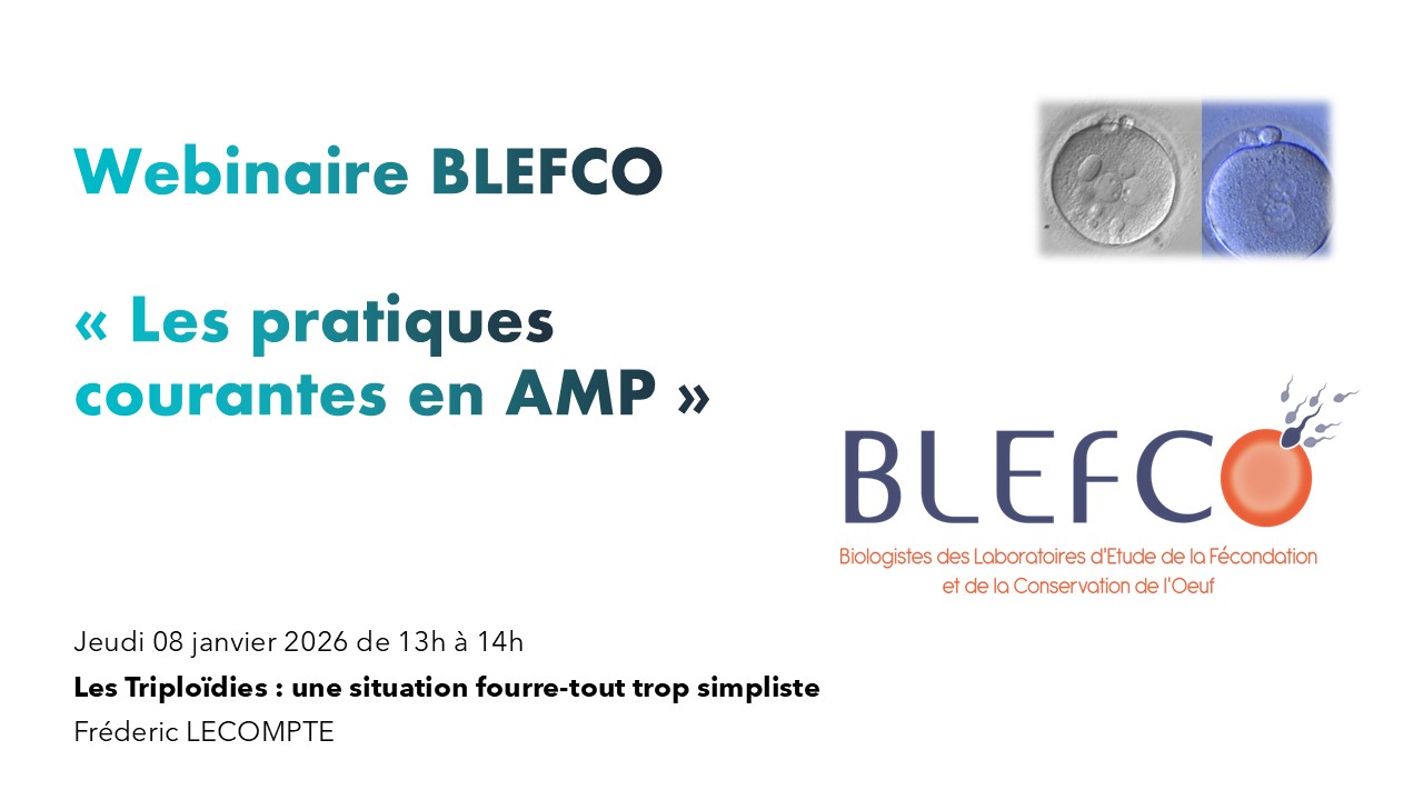 Le Jeudi 8 janvier 2026, aura lieu le premier webinaire de l’année 2026 sur les pratiques courantes en AMP sur le thème : Les Triploïdies : une situation fourre-tout trop simpliste, destinés à tous et en particulier aux internes, techniciens, biologistes…