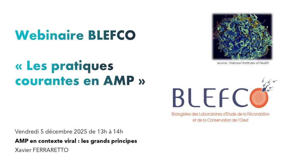 Le Vendredi 5 décembre 2025, aura lieu notre prochain webinaire sur les pratiques courantes en AMP sur le thème : AMP en contexte viral : les grands principes, destinés à tous et en particulier aux internes, techniciens, biologistes…